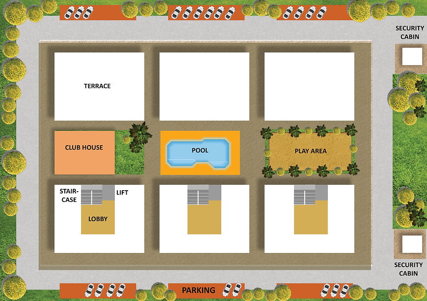 Fictional site plan of a gated society, showing the areas commonly present and used by its residents.